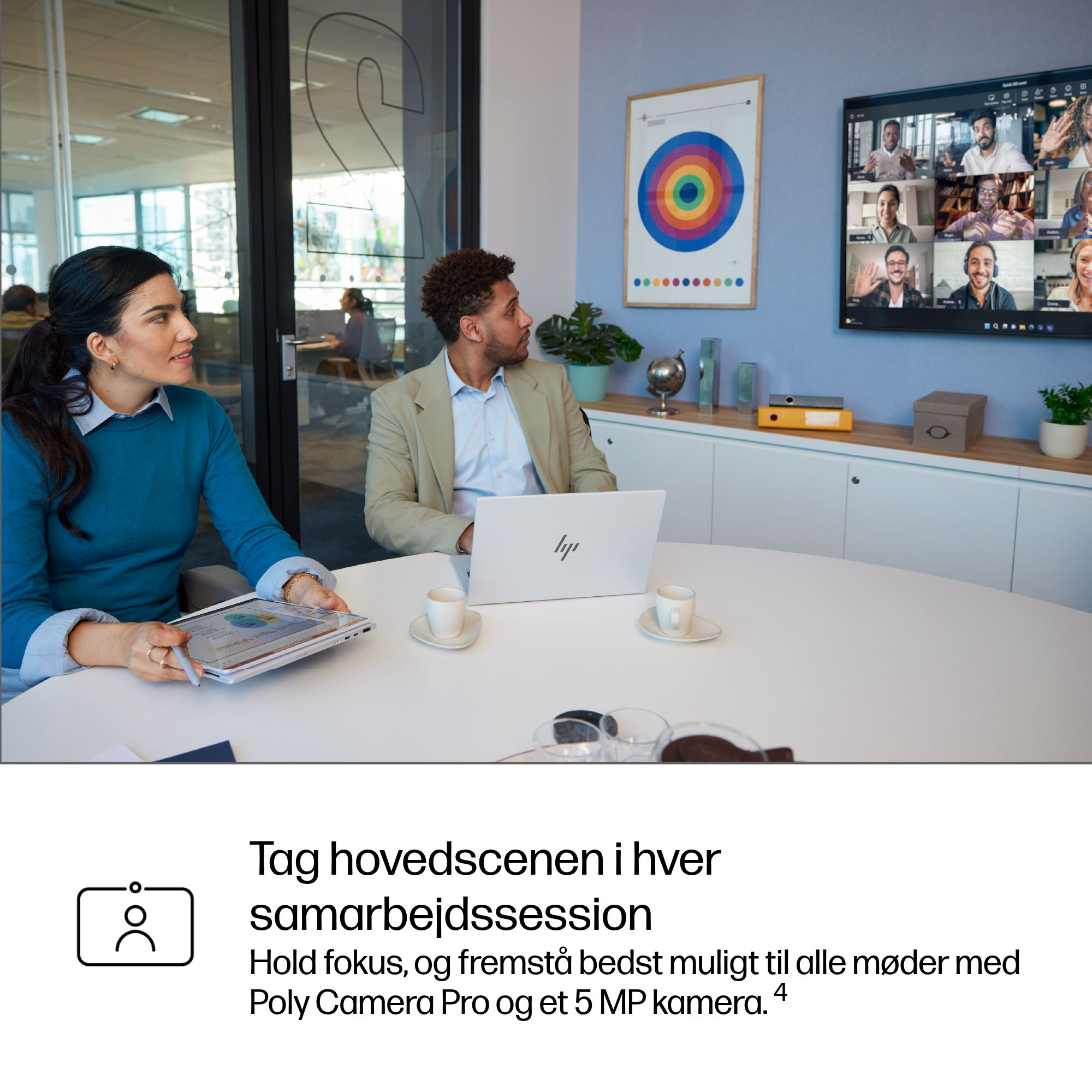 Vis dig fra din bedste side under videoopkald, og spar samtidig på strømmen. Administrer dine videokontrolfunktioner til interne og eksterne kameraer med Poly Camera Pro. Nu sparer automatisk indramning, Spotlight, baggrundssløring og virtuelle baggrunde strøm ved at køre på NPU'en.[15]